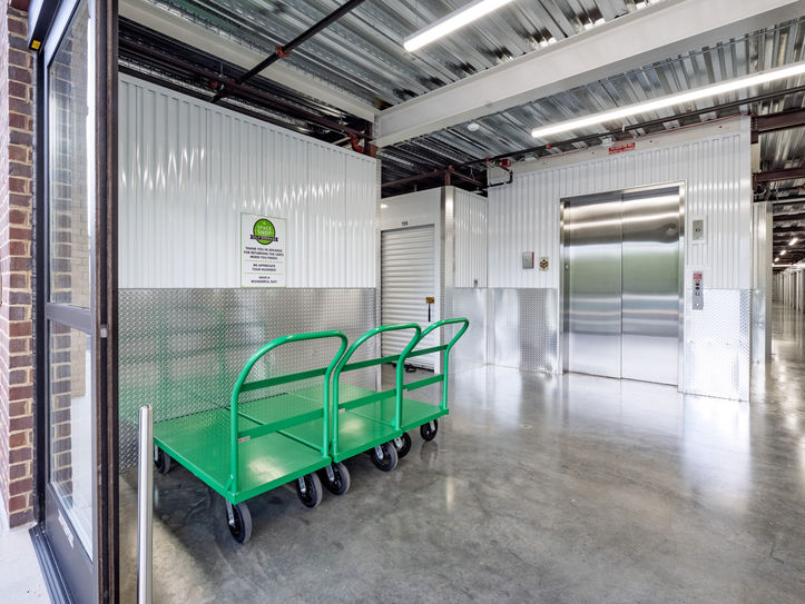 3-Story Slab on Grade building with single-story climate controlled buildings at the side and RV Parking Canopies at the Rear. This building features a raised loading dock on the main building, 2 Covered RV Parking Canopies, and Enclosed RV Stoage Buildings